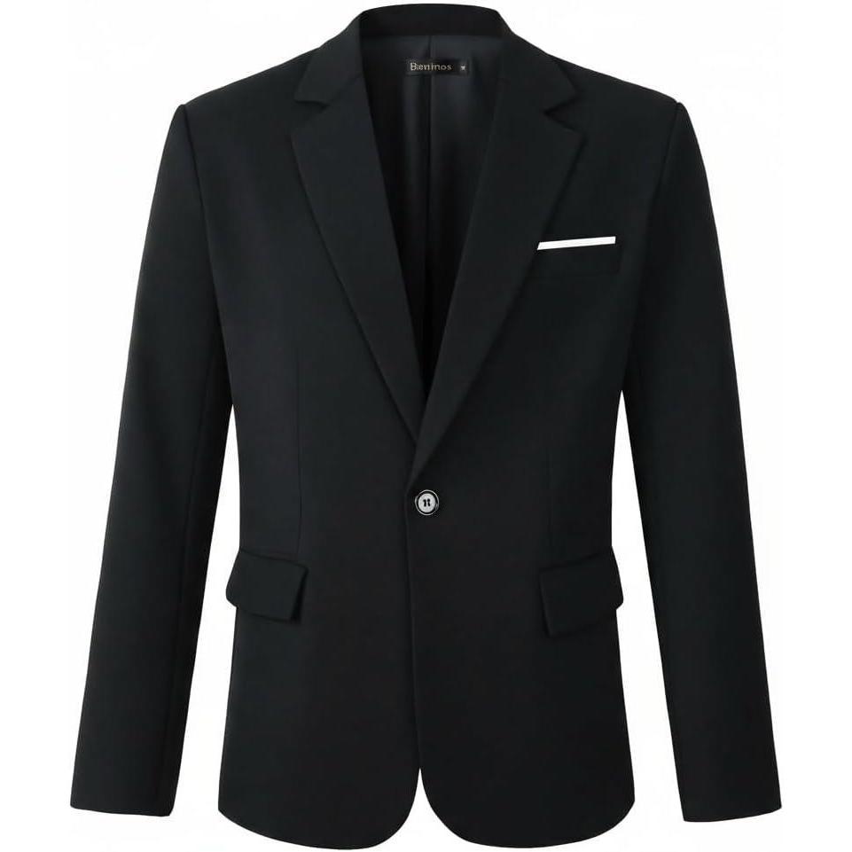 Beninos Mens Sport Coat Casual Blazer One Button Business Suit Jacket(306 Black)